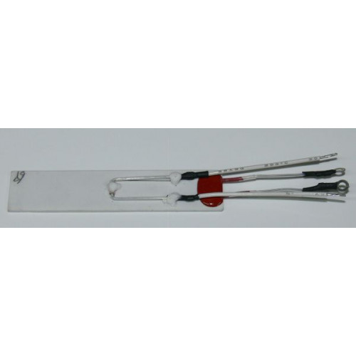 A brand new 70 ohm heater element with thermistor pre-attached compatible with the non switch side of Mk4 GHDs. The heater has small ring crimps on the end for screwing onto a PCB and thermistor has bare ends for soldering.